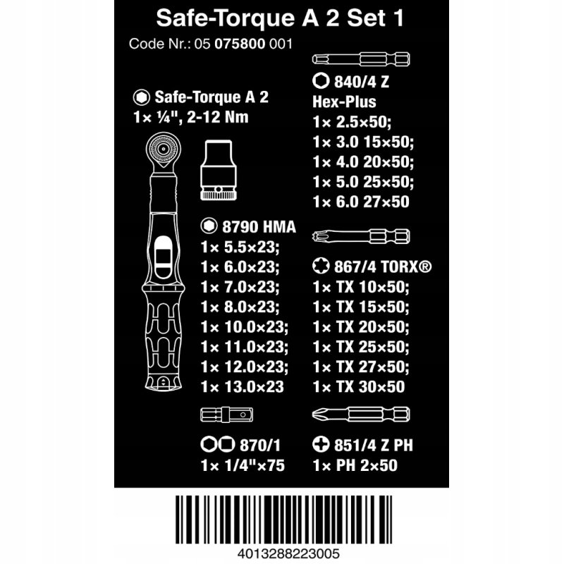 Safe-Torque A 2, комплект 1, с шестигранной головкой ¼ дюйма, 2–12 Нм, 23 шт.