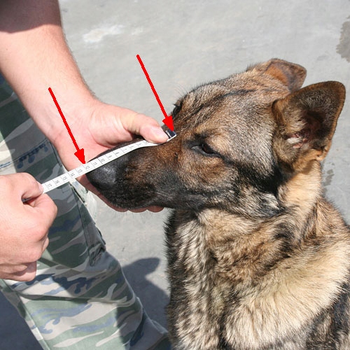Примеры фотографий дают информацию о том, как измерить морду собаки.
