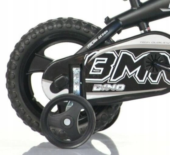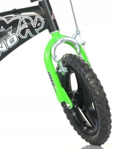 Детский Велосипед Dino BMX 12 дюймов, производитель Dino Bikes Италия — спортивный велосипед для маленьких игроков. Колеса имеют пластиковый обод с цельной шиной, что исключает возможность повреждения, и в то же время облегчает обслуживание, поскольку нет необходимости накачивать колеса. Велосипед имеет один передний тормоз. Центральный блок имеет фиксированный переключатель, так называемый «фуртслап».