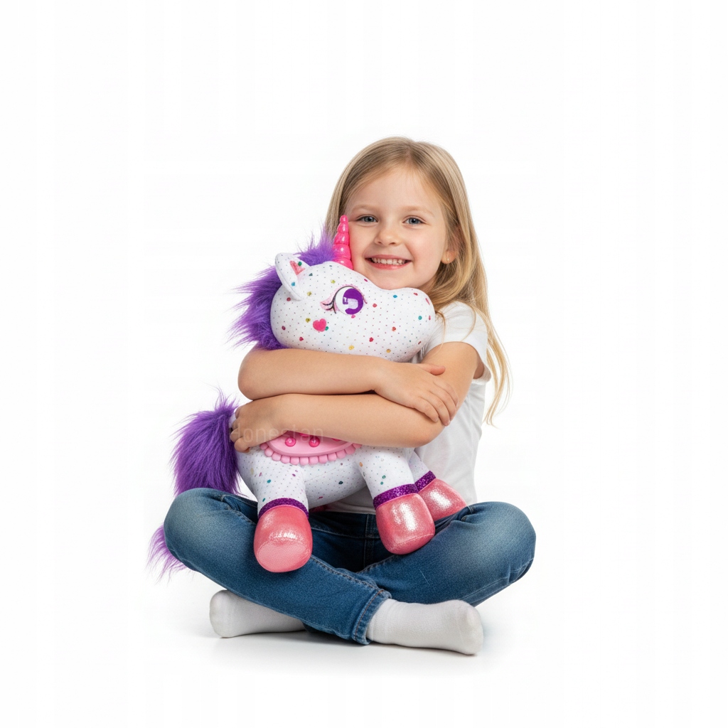 ZeeZee — милый мягкий единорог, который реагирует на прикосновения, рассказывает истории, поет колыбельные и побуждает ребенка действовать вместе. Он сочетает в себе магию воображения с современными технологиями — благодаря интерактивной панели вы можете регулировать громкость, выбирать режимы игры и наблюдать, как талисман реагирует на движение и звуки. Это безопасный, дружелюбный плюш, созданный для детей от 3 лет, который развивает эмоции, творческие способности, чувствительность и воображение.