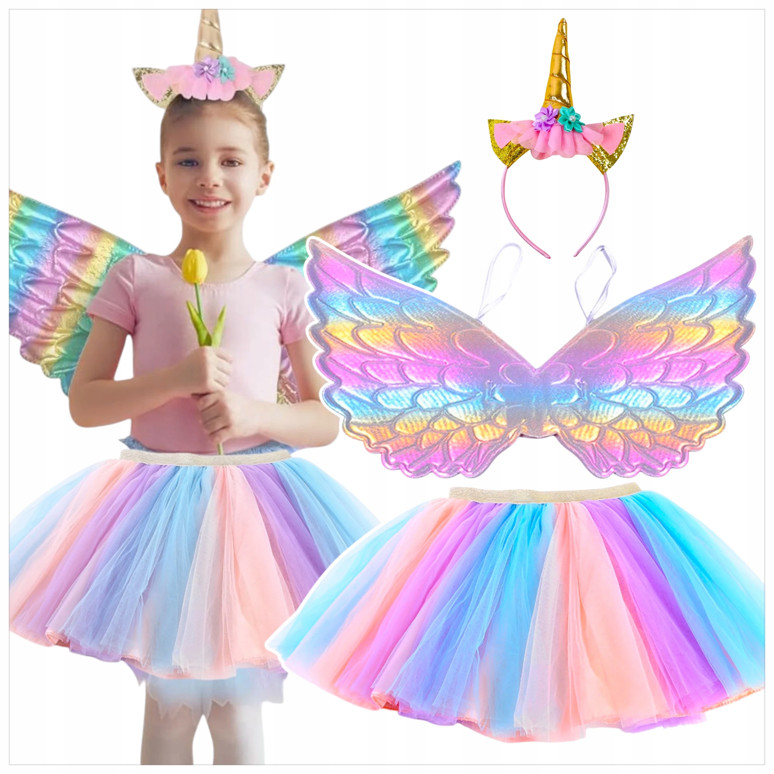 Костюм единорога для девочки - красочный костюм-наряд с повязкой на голову и крыльями