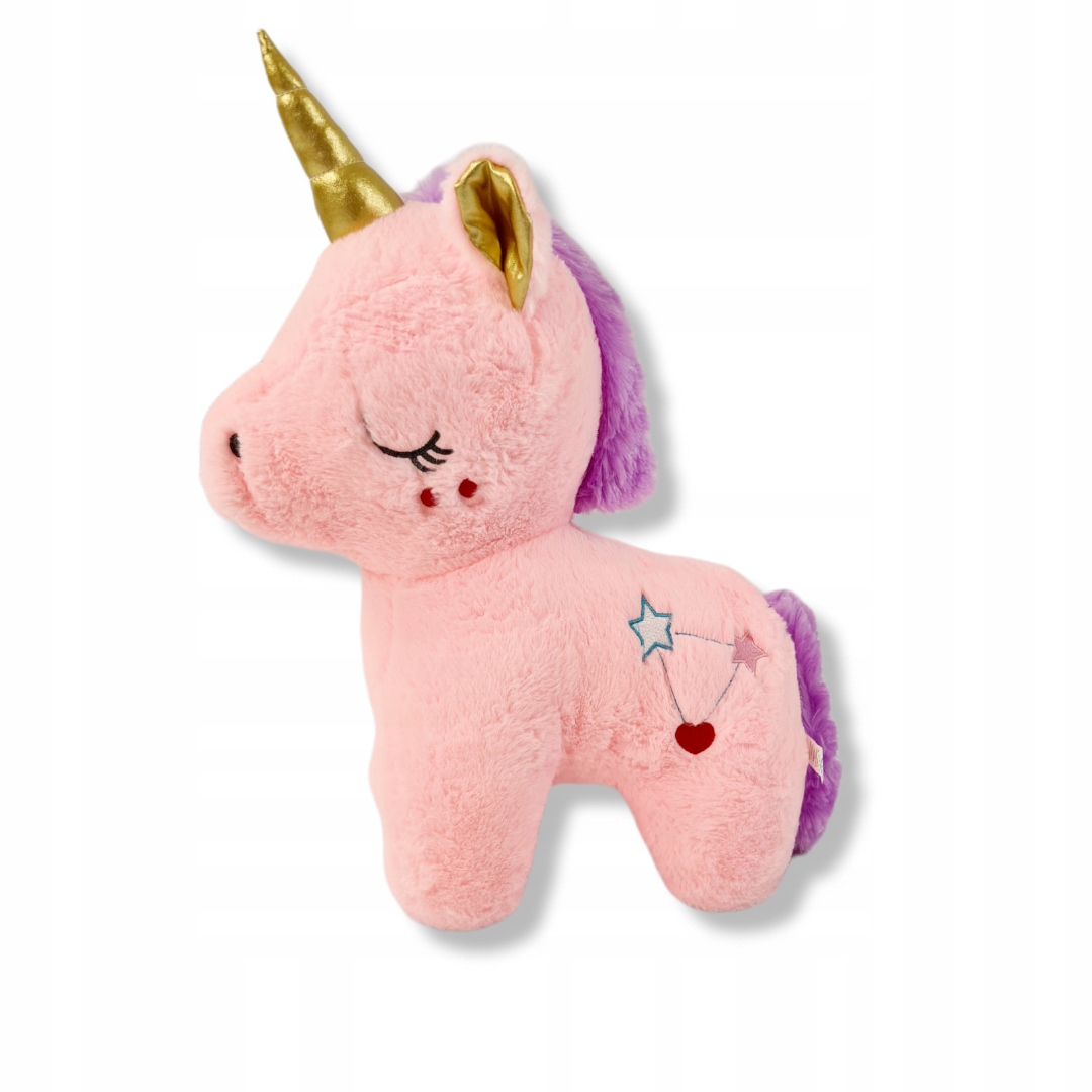 Розовый единорог 50 см – отличная идея подарка ребенку. Плюшевая игрушка также может стать идеальным декоративным элементом в детской комнате. Благодаря использованию качественного плюша единорог приятен на ощупь. Талисман сертифицирован Европейским Союзом, подтверждающим безопасность игрушки.