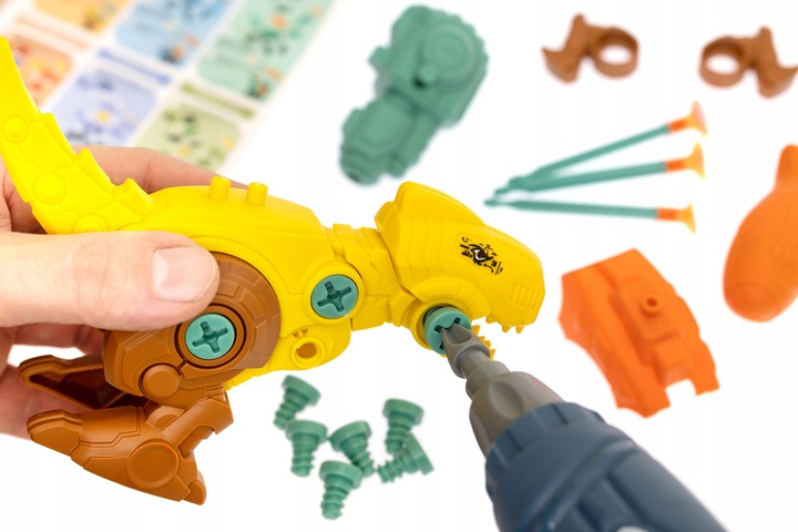 Dinozaury do skręcania wkrętarka klocki konstrukcyjne + wyrzutnie strzałki