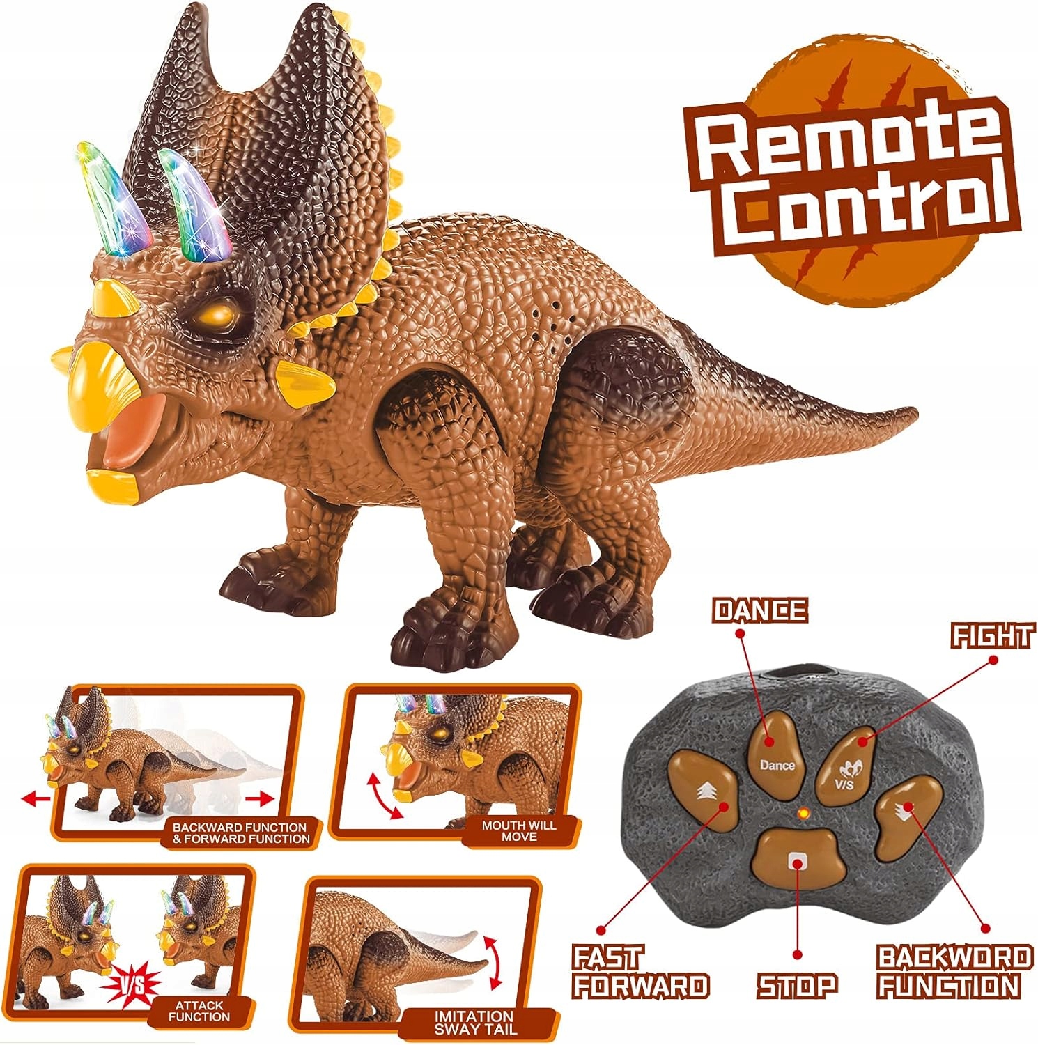 Интерактивный, динозавр с дистанционным управлением - идеальный подарок для каждого поклонника этих существ. Контролируемый с пилотом, с звуковыми и легкими эффектами, будет много удовольствия для каждого ребенка.