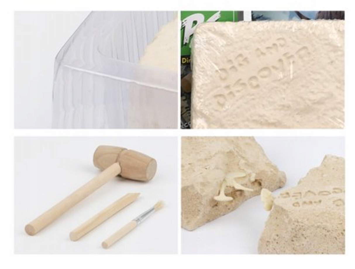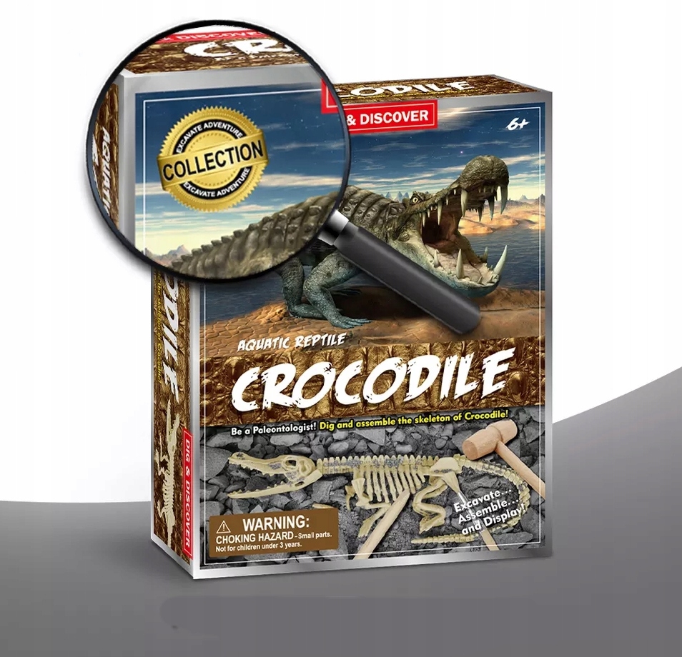 Набор для юного учёного. В блоке спрятан скелет динозавра, который нужно раскопать с помощью инструментов, входящих в набор, а затем соединить кости, чтобы получить скелет Крокодила.