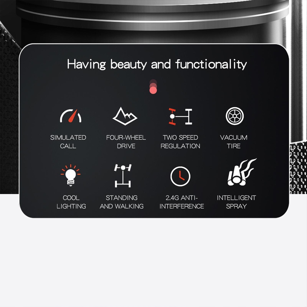 ➡pable Управление 2,4 ГГц : набор включает в себя пульт дистанционного управления с простыми кнопками, обеспечивая легкий контроль над транспортным средством. трюк . Поверхности, а также в более сложных условиях, например, на траве, песке или неровных Они подчеркивают его футуристический вид, особенно в темноте.