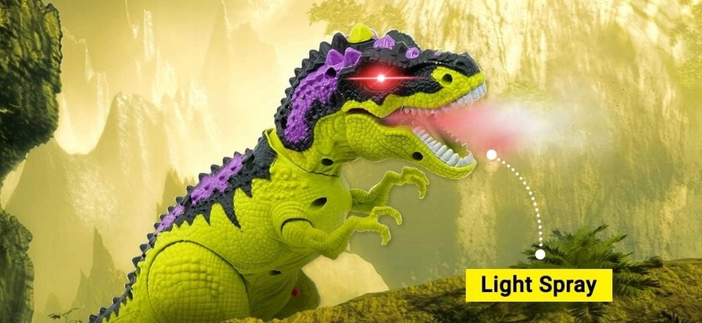 - Глаза динозавра светятся красным, а изо рта идет дым, что придает устрашающий эффект. Световой и звуковой эффект усиливает впечатления от игры с динозавром.