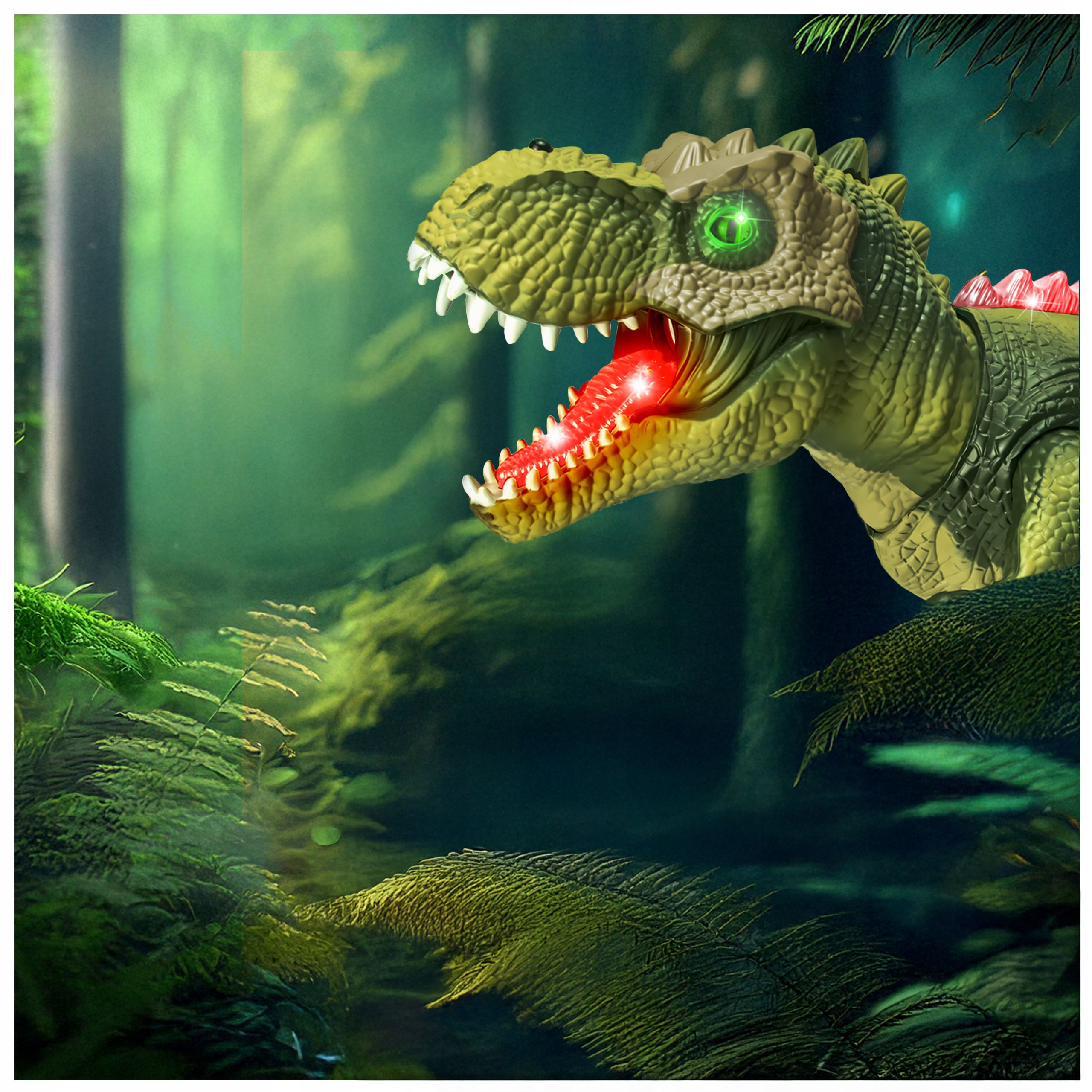 Динозавр был оснащен Light Effects и sound . Освеченные глаза , красочные ridge и рта и реалистичный рев усиливают впечатления при игре с динозавром. Благодаря диодам, расположенным на спине и в рот, игрушка выглядит также в темноте