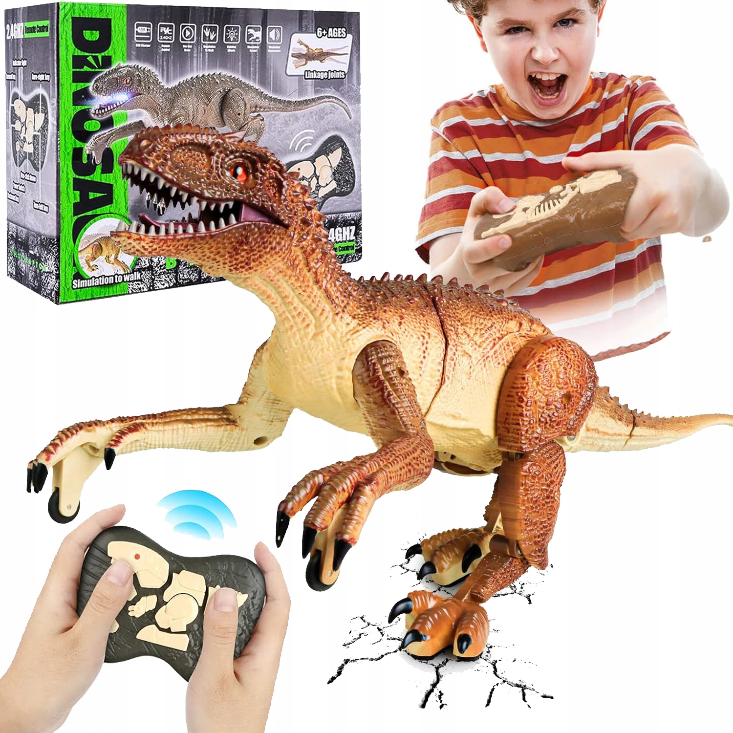 - Поведением и маршрутом игрушечного динозавра можно управлять с помощью пульта.