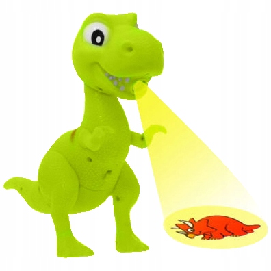 Динозавр Ти-рекс — это проектор с тремя наборами слайдов для показа на бумаге и на бумаге. стена. Это наверняка порадует многих маленьких любителей динозавров. Проектор имеет регулируемые углы наклона, благодаря чему мы можем легко настроить отображение изображения под поверхность, на которой хотим его получить.