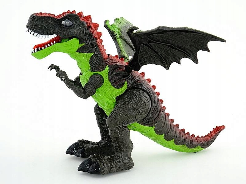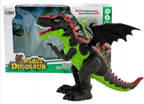 Наш T-REX отличается от классической рептилии наличием крыльев, поэтому некоторые могут назвать его драконом! Большим преимуществом изделия является то, что динозавр издает звуки, как настоящая рептилия, имеет подвижную голову и светящиеся огоньки на языке и в глазах. Благодаря тому, что он питается от батареек, он может ходить!