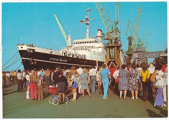 Ґдиня Корабель Баторій у порту, вітаючи багатьох людей