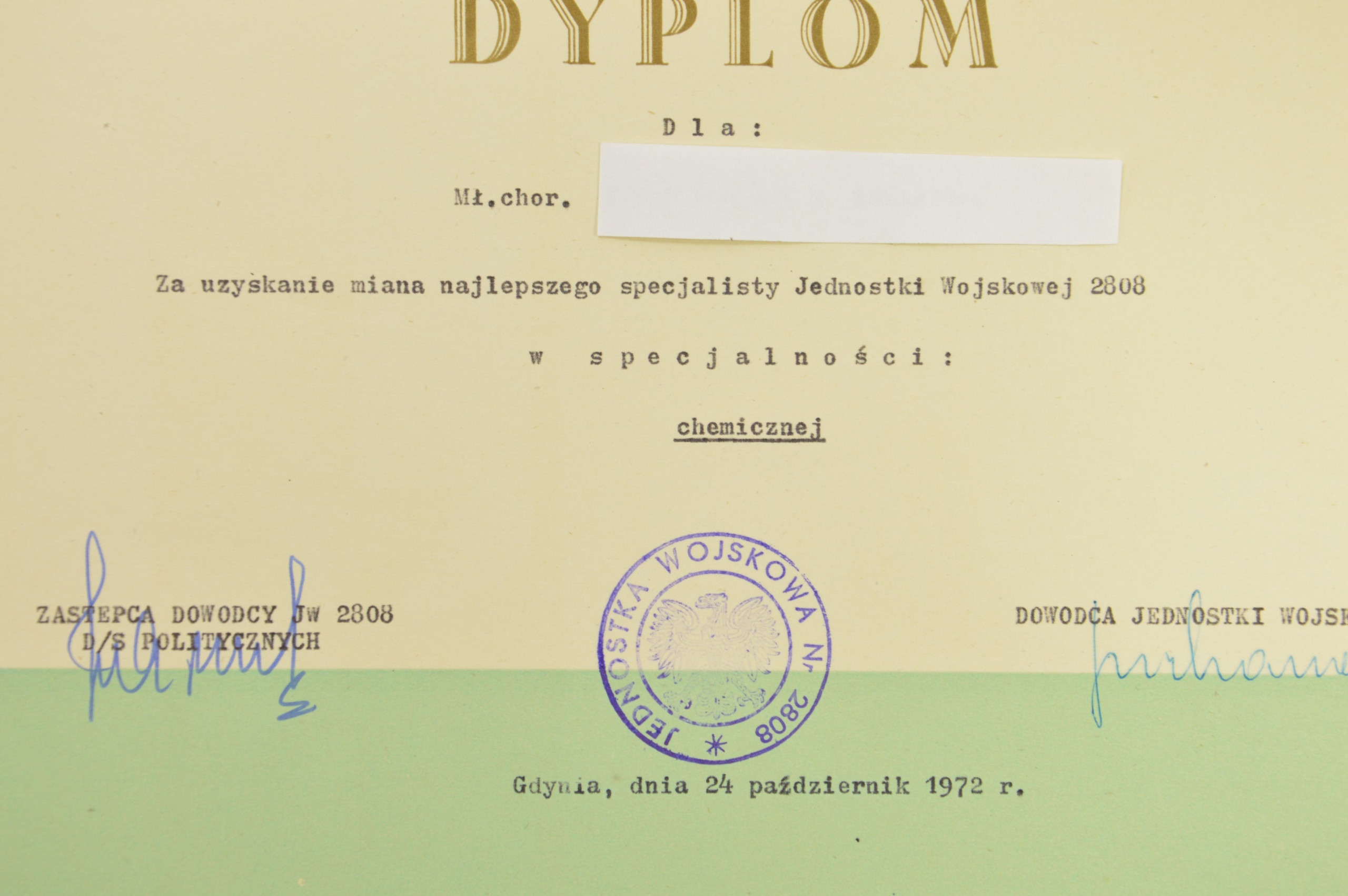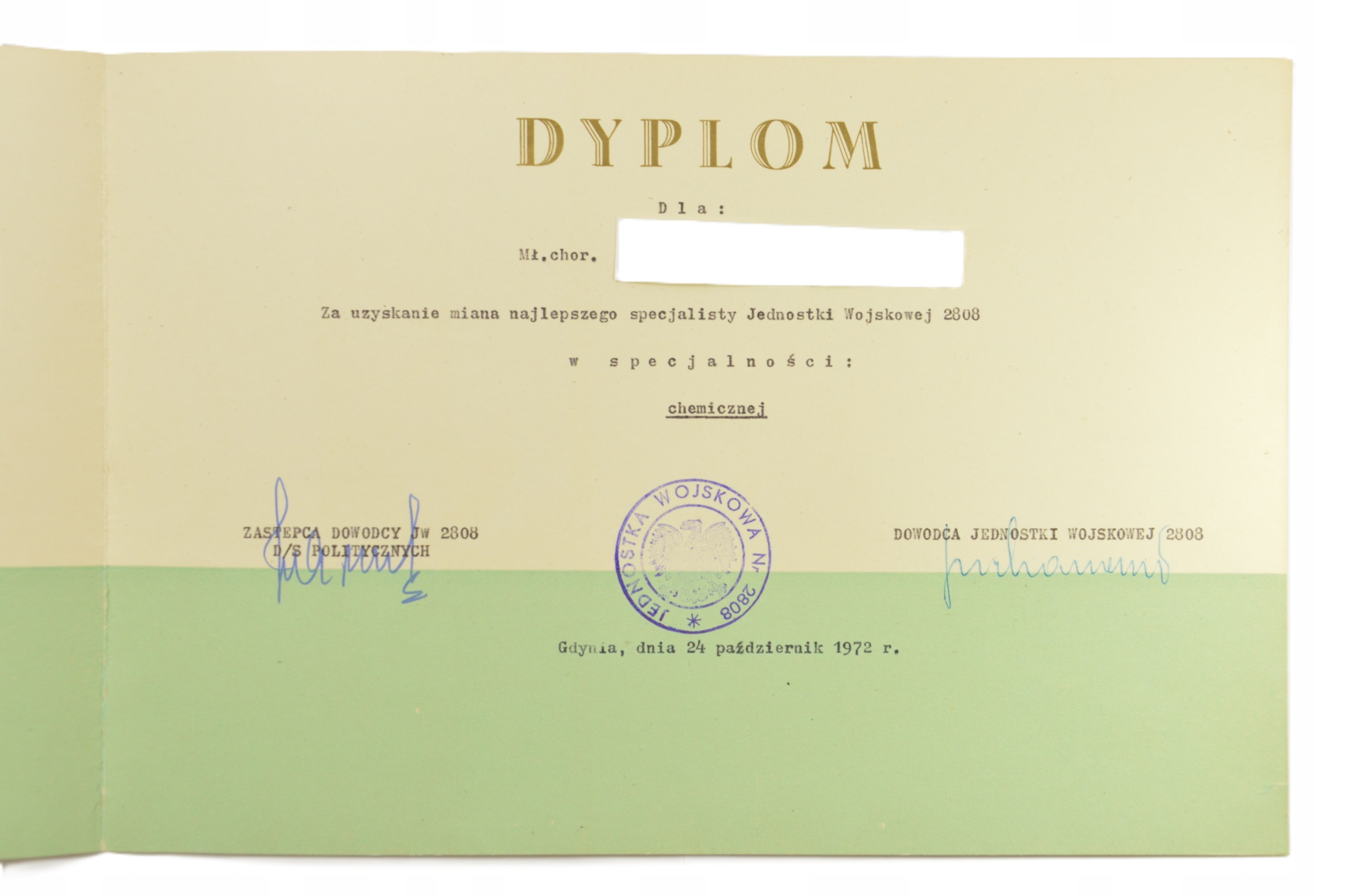 ВМФ Польской Народной Республики, диплом за звание лучшего специалиста JW 2808 по химической специальности, 1972 г.