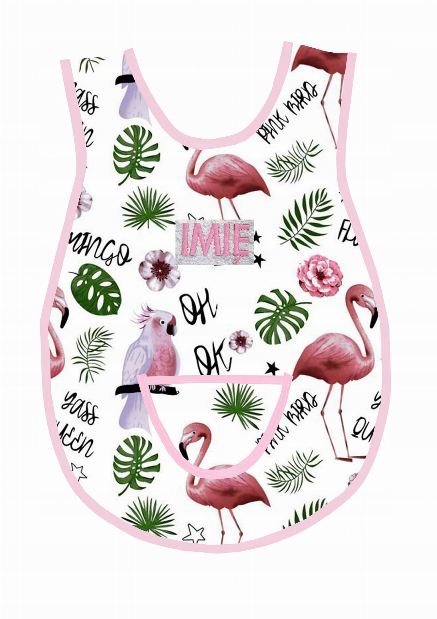 Фартук для детского сада фламинго и попугаев белый фон wz 659