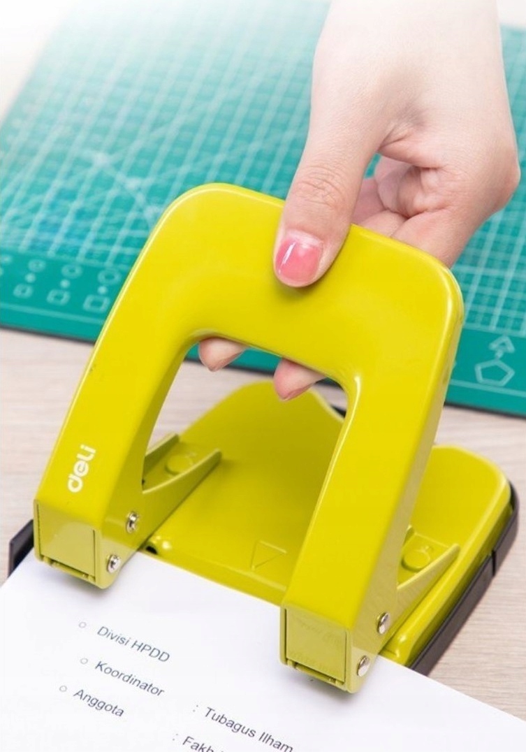 Дырокол Deli на 35 листов, зеленый, расстояние между отверстиями 80 мм, диаметр 5,5 мм.