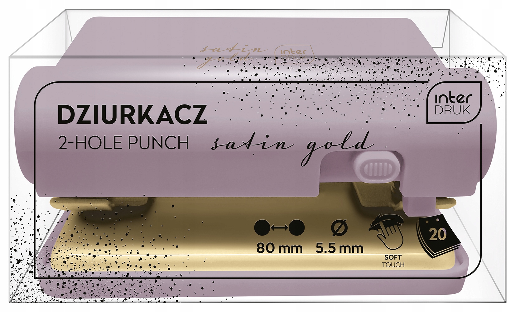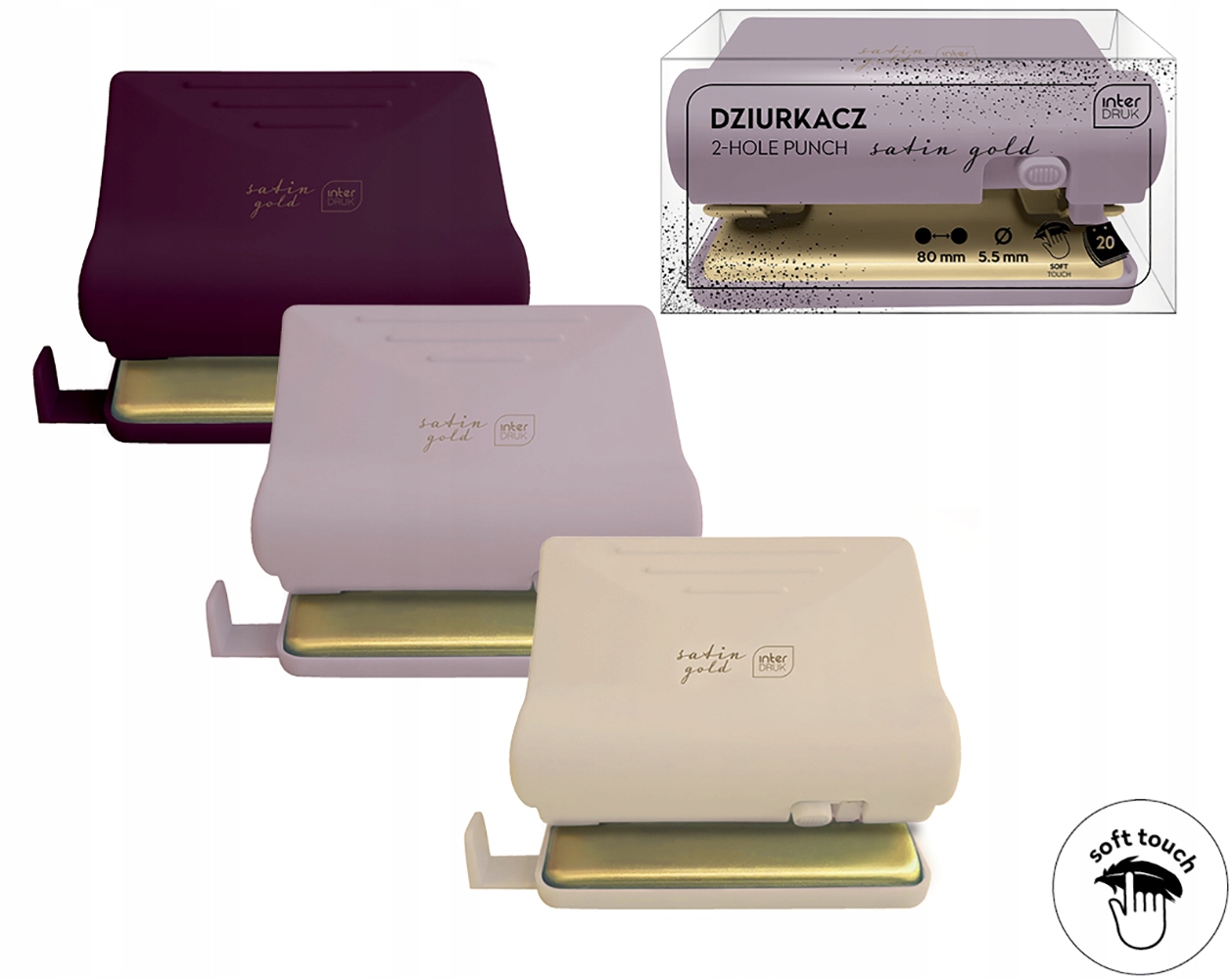 Дырокол с мягким атласным корпусом, доступен в трех стильных цветах на выбор. Он привлекает внимание деталями из матового золота. Пробивает до 20 листов бумаги. Диаметр отверстия: 5,5 мм. Оснащен выдвижным ограничителем формата и фиксатором положения рычага. Познакомьтесь с другими продуктами из нашей коллекции Satin Gold — учетными карточками, ластиками, ручками, степлерами и канцелярскими принадлежностями — и создайте свой собственный уникальный набор!