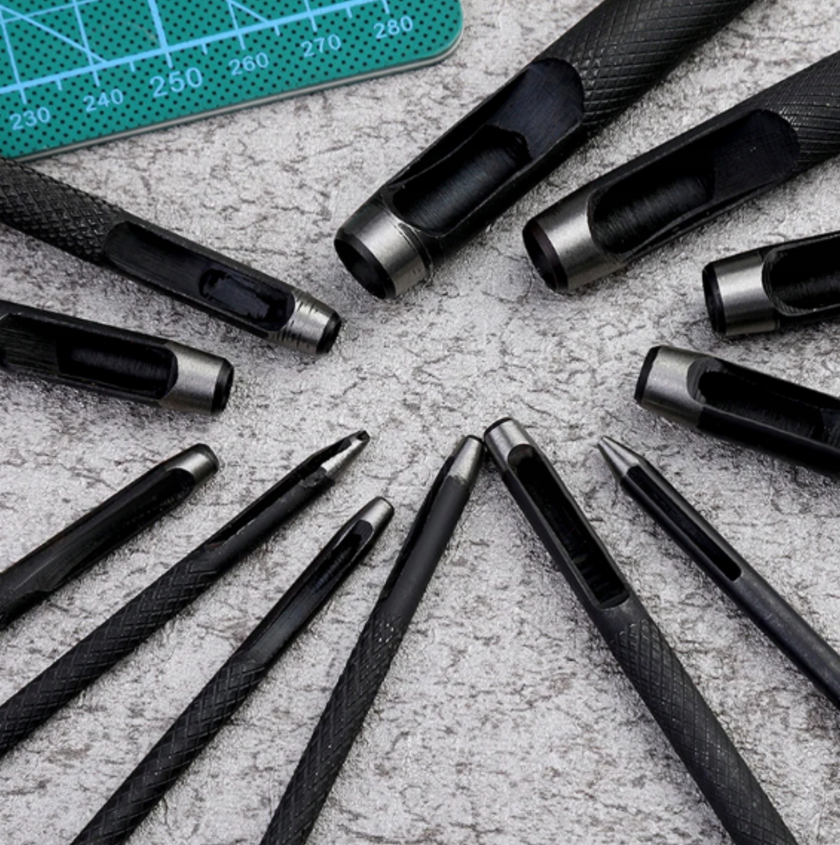 4. Набор стальных пуансонов изготовлен из прочной термообработанной углеродистой стали, обеспечивающей прочные и острые режущие кромки