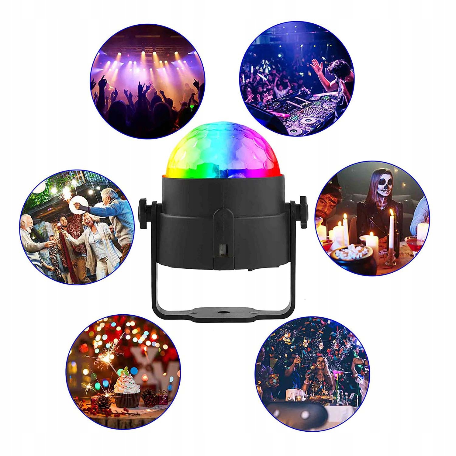 🎶Красочный светодиодный диско-шар, вращающийся сценический светильник с голосовым управлением