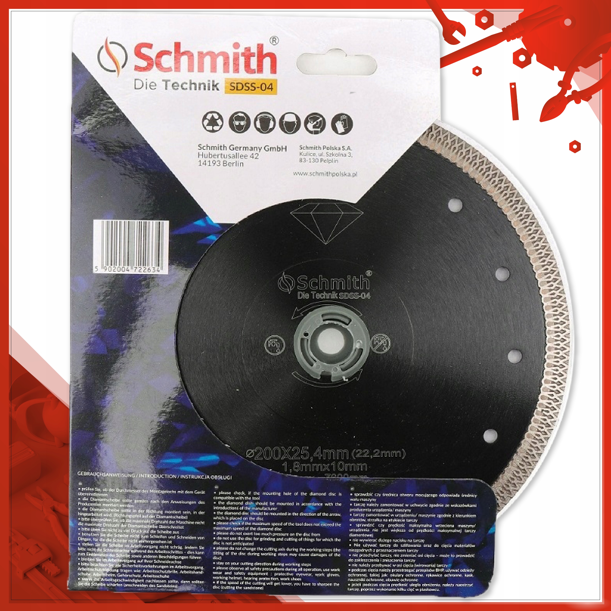 Оплачивая «ДИСК АЛМАЗНИЙ 200мм ДЛЯ ПЛИТКИ PORKEY - SCHMITH», вы можете быть уверены, что данный товар из каталога «Щиты» будет доставлен из Польши и проверен на целостность. В цене товара, указанной на сайте, учтена доставка из Польши. Внимание!!! Товары для Евросоюза, согласно законодательству стран Евросоюза, могут отличаться упаковкой или наполнением.