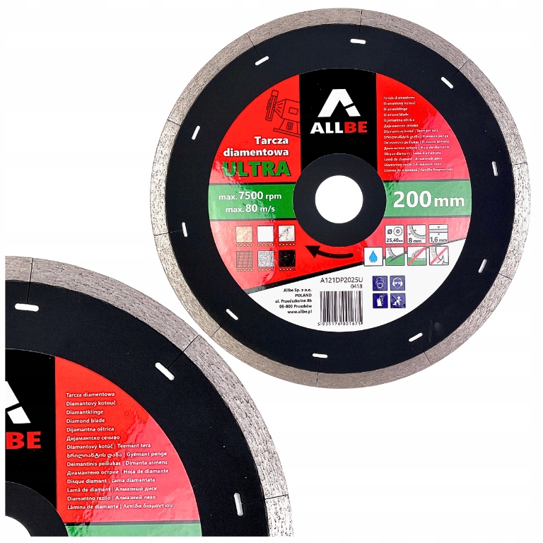 Алмазные диски ALLBE предназначены для самых требовательных пользователей и профессионалов. В циферблате использован алмазный сегмент высочайшего качества, обработанный лазером, благодаря чему циферблат не перегревается и очень стабилен. Очень малая толщина диска (1,6 мм) обеспечивает точную резку, а очень мелкое алмазное зерно обеспечивает работу без повреждения плитки.