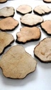 Поверхность ломтиков не полируется и после нарезания имеет первоначальную структуру.Внимание:Ломтики требуют сушки, так как они свеженарезанные.Неправильная сушка или отсутствие сушки, оставление ломтиков во влажной среде приводит к их плесневению! Это касается свежих и сушеных срезов.Лучше всего обеспечить приток воздуха к каждому срезу, что позволит обеспечить бережную сушку и предотвратить чрезмерное растрескивание древесины – чем медленнее мы сушим, тем меньше трещин.Трещины появляются часто из-за того, что древесина разрез поперек волокон имеет такие тенденции, поэтому в упаковке могут присутствовать участки с трещинами!