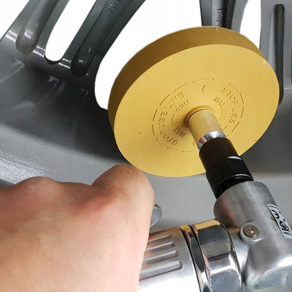 ✅Приклеивание грузов на алюминиевые и стальные диски: Диск «разрезает» затвердевший клей, раскатывая его в резиновую крошку. Всего нескольких оборотов на низкой скорости (2000-4000 об/мин) достаточно, чтобы обод стал гладким и готовым к мойке или покраске.