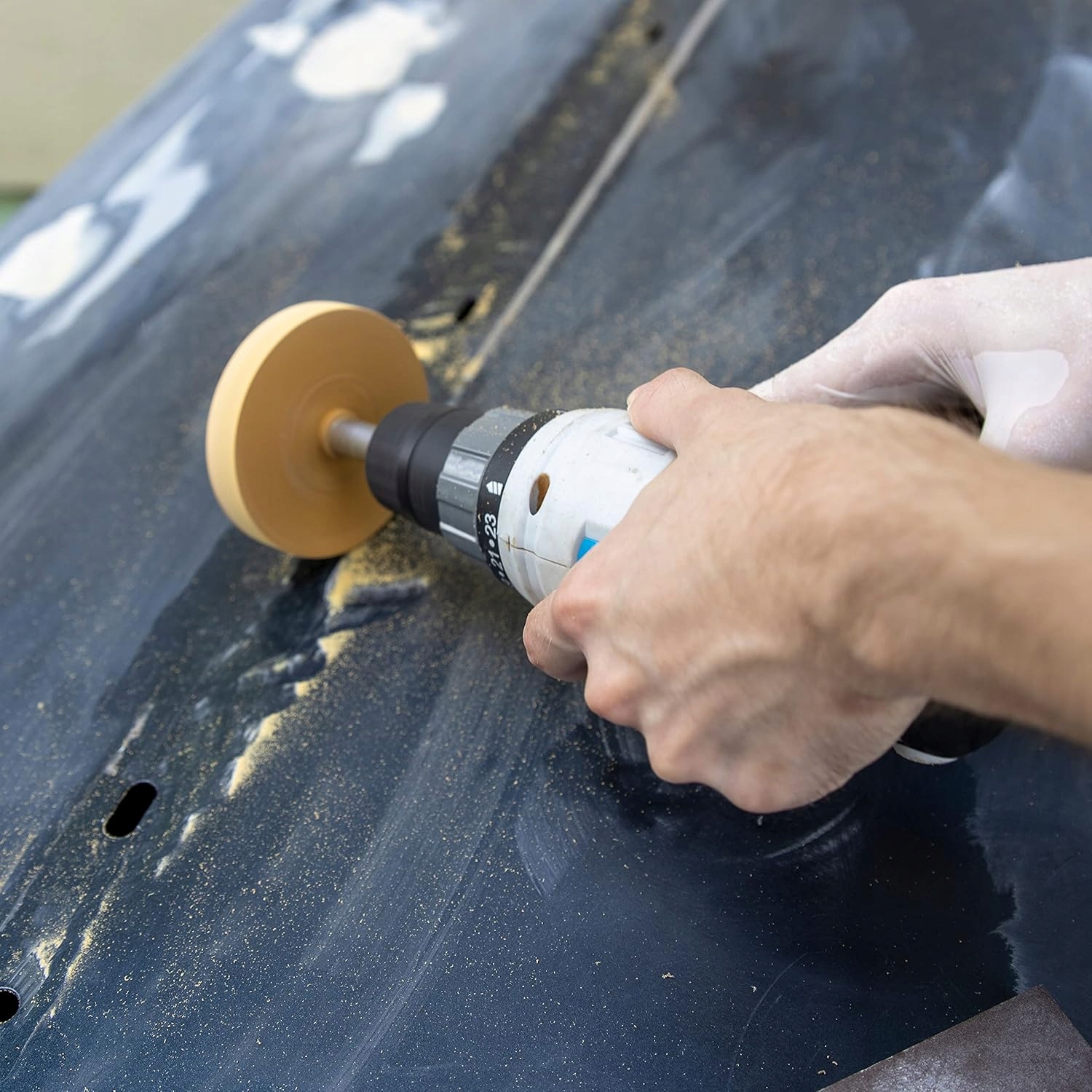 ✅Снятие тонких слоев краски или лака с металла и пластика: Когда слой покрытия верхний (старая глина, граффити, сколы из банки), диск аккуратно «соскребает» его, не вгрызая в подложку. Отлично подходит перед локальным ремонтом, ремонтом пластиковых бамперов, велосипедных рам, стальных гаражных ворот. При необходимости отделываете бумагой Р320–Р400 и поверхность готова к грунтовке.