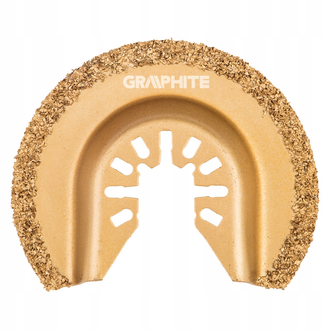 Полукруглый диск ГРАФИТ для резки керамики (арт. 56Н064) диаметром 64 мм имеет покрытие из карбида вольфрама. Позволяет точно резать настенную плитку по прямой линии и устранять швы с помощью мультиинструмента ГРАФИТ.