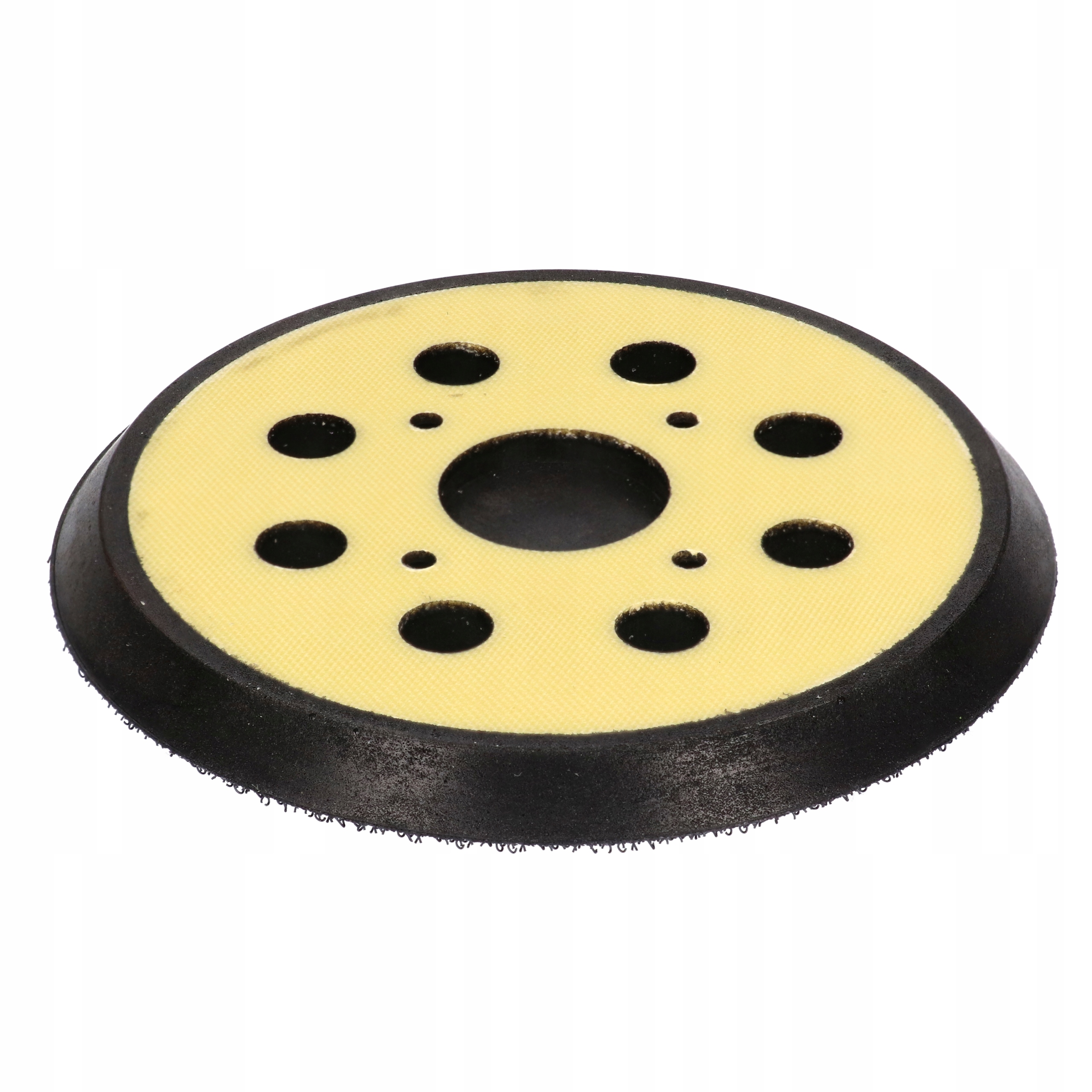 Диск на липучке имеет 8 отверстий , что обеспечивает очень хорошее удаление пыли, 4 отверстия для крепежные винты и центрирующее гнездо.