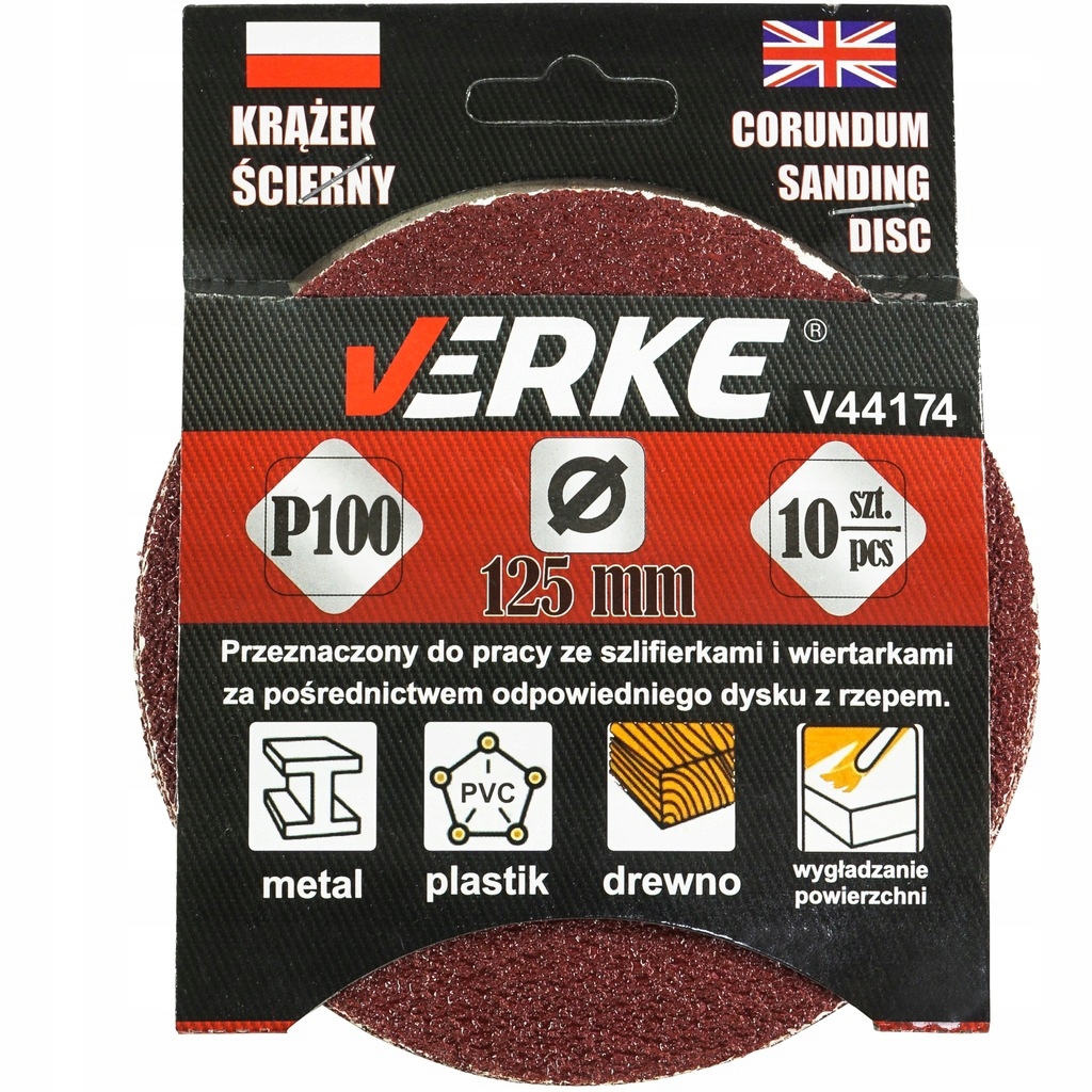 ДИСК НАЖДАЛЬНОЙ БУМАГИ P 100 125 ММ 10 ШТ VERKE