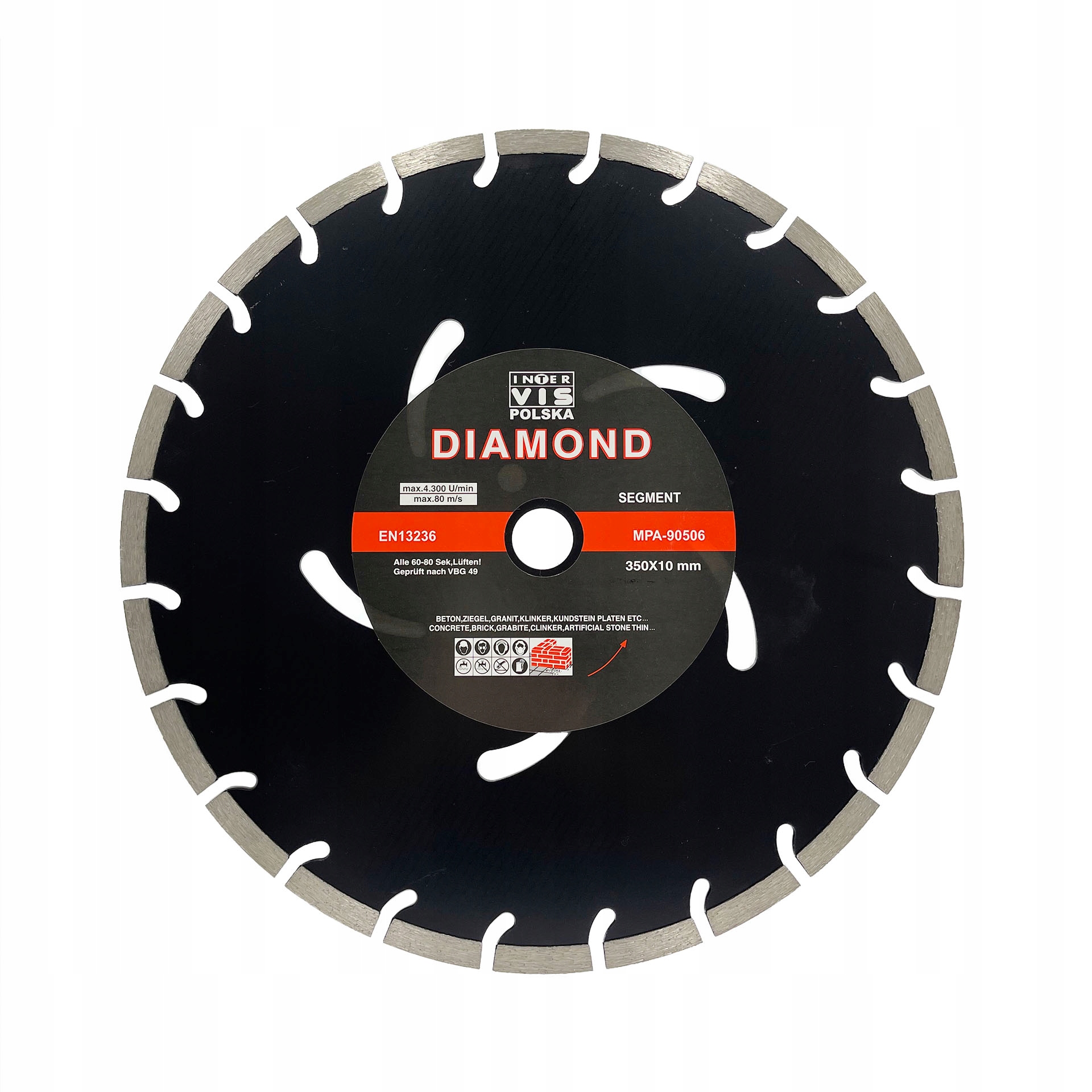 Профессиональный сегментный диск предназначен для резки твердых материалов, таких как: кирпич, брусчатка, клинкер, газобетон, керамическая плитка, бетон, асфальт, мрамор, гранит, натуральный и искусственный камень.