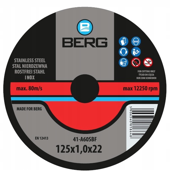 Просматривая «ДИСК РЕЖУЩИЙ ДИСК INOX 41 125x1,0x22 BERG #1554», вы можете быть уверены, что данный товар из каталога «Диски и шлифовальные круги» будет доставлен из Польши и проверен на целостность. В цене товара, указанной на сайте, учтена доставка из Польши. Внимание!!! Товары для Евросоюза, согласно законодательству стран Евросоюза, могут отличаться упаковкой или наполнением.