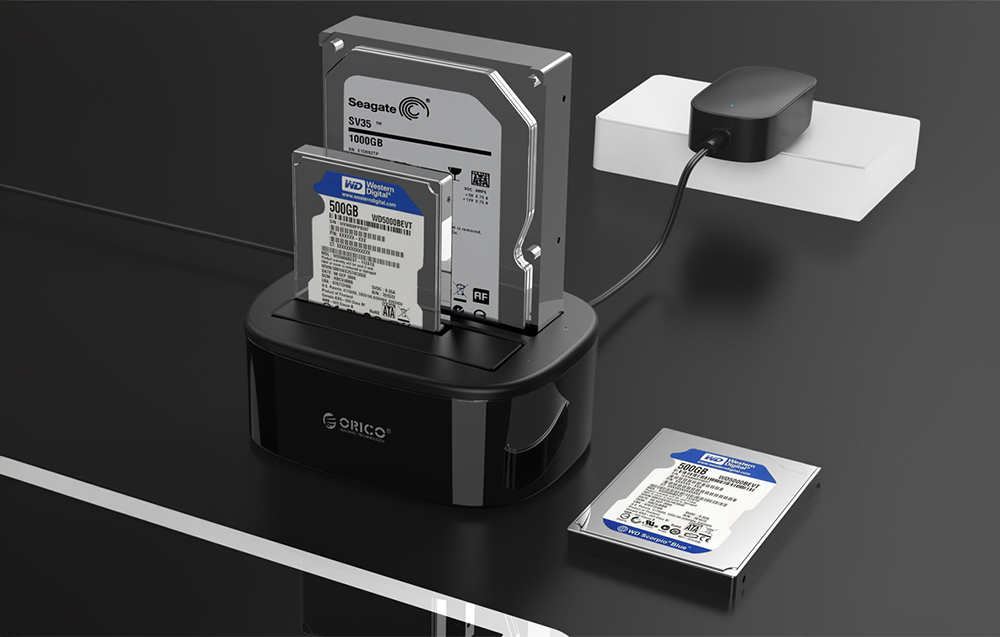 - Док-станция ORICO для дисков HDD/SSD 2,5/3,5 ", 5 Гбит/с, USB-C to USB-C/A с функцией клонирования (черная)