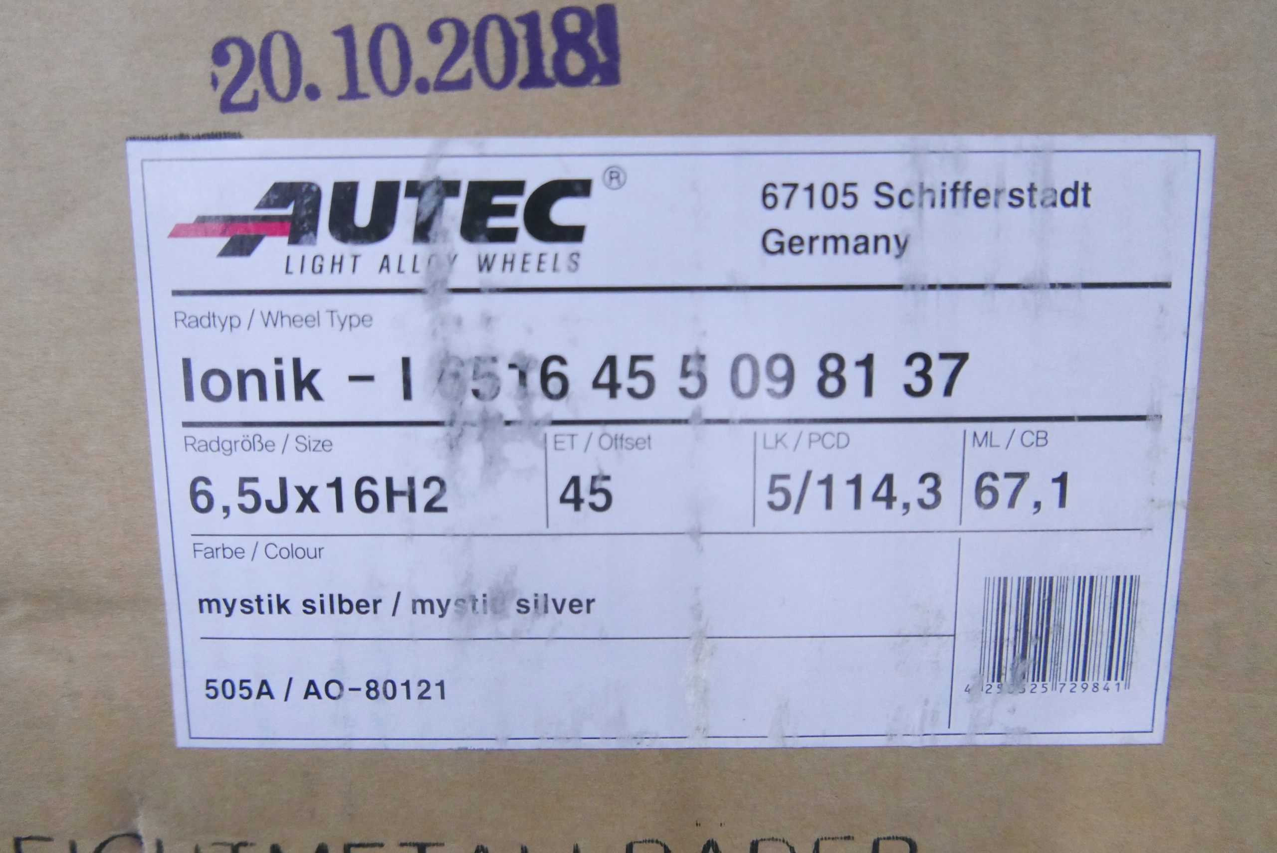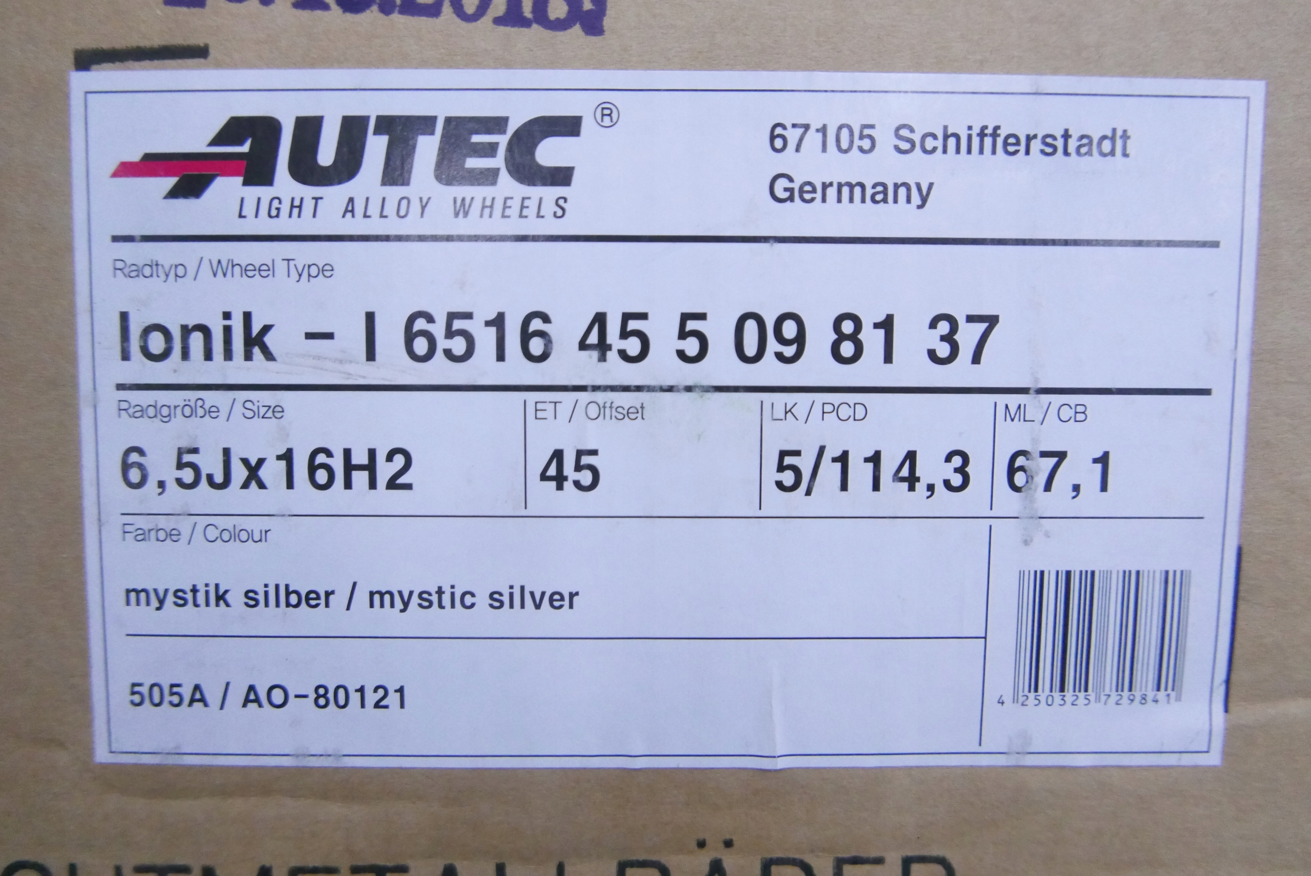 5X114.3 ШИРИНА 6,5 УСТАНОВКА ET45 СТУПИЦА 67.1