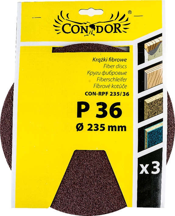 АБРАЗИВНЫЕ ДИСКИ ВОЛОКОННЫЕ 235мм, P36 - 3 шт