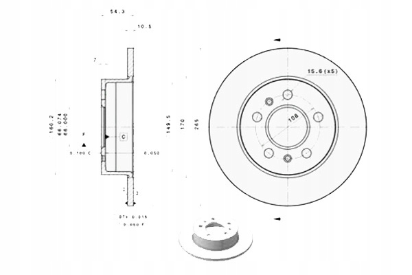 - Толщина тормозного диска [мм]: 10,5