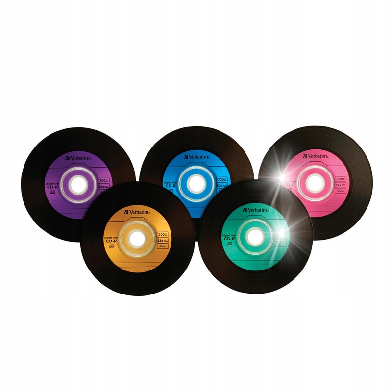 Виниловые диски Verbatim оформлены в стиле ретро и выглядят как виниловые пластинки. Пять разных цветов облегчают сортировку.