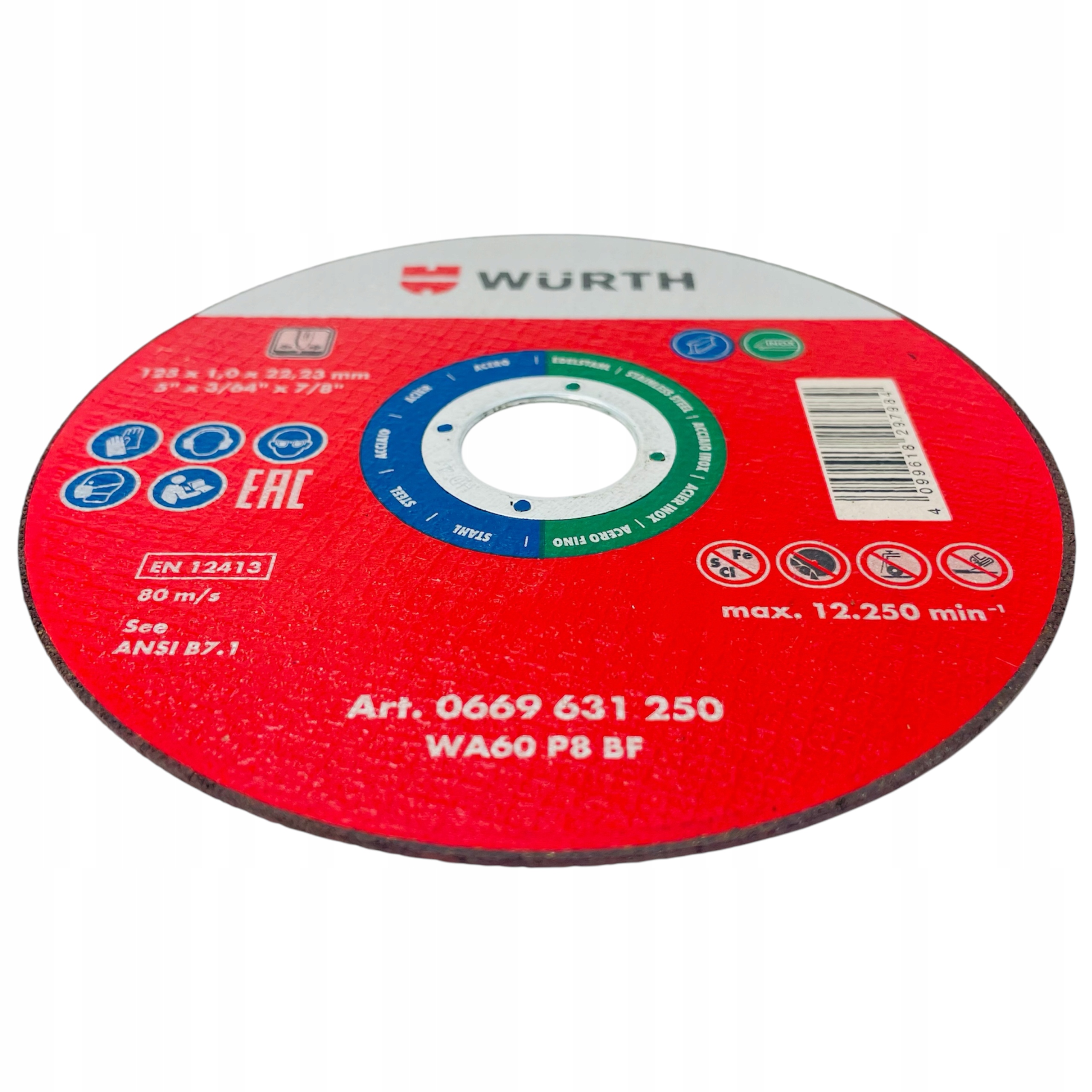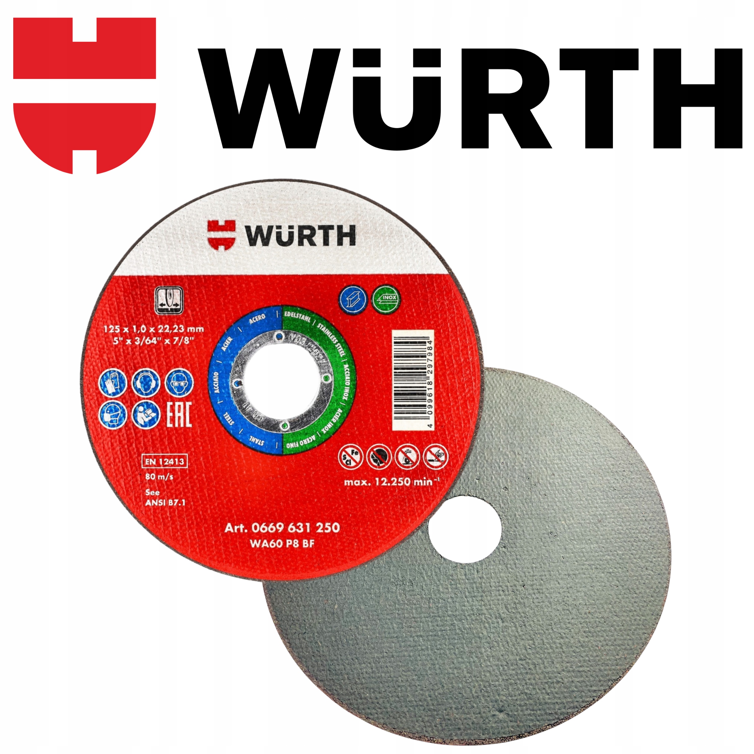 Диски ДЛЯ РЕЗКИ МЕТАЛЛА для НЕРЖАВЕЮЩЕЙ СТАЛИ inox 125x1 Wurth Disc Strong 25x