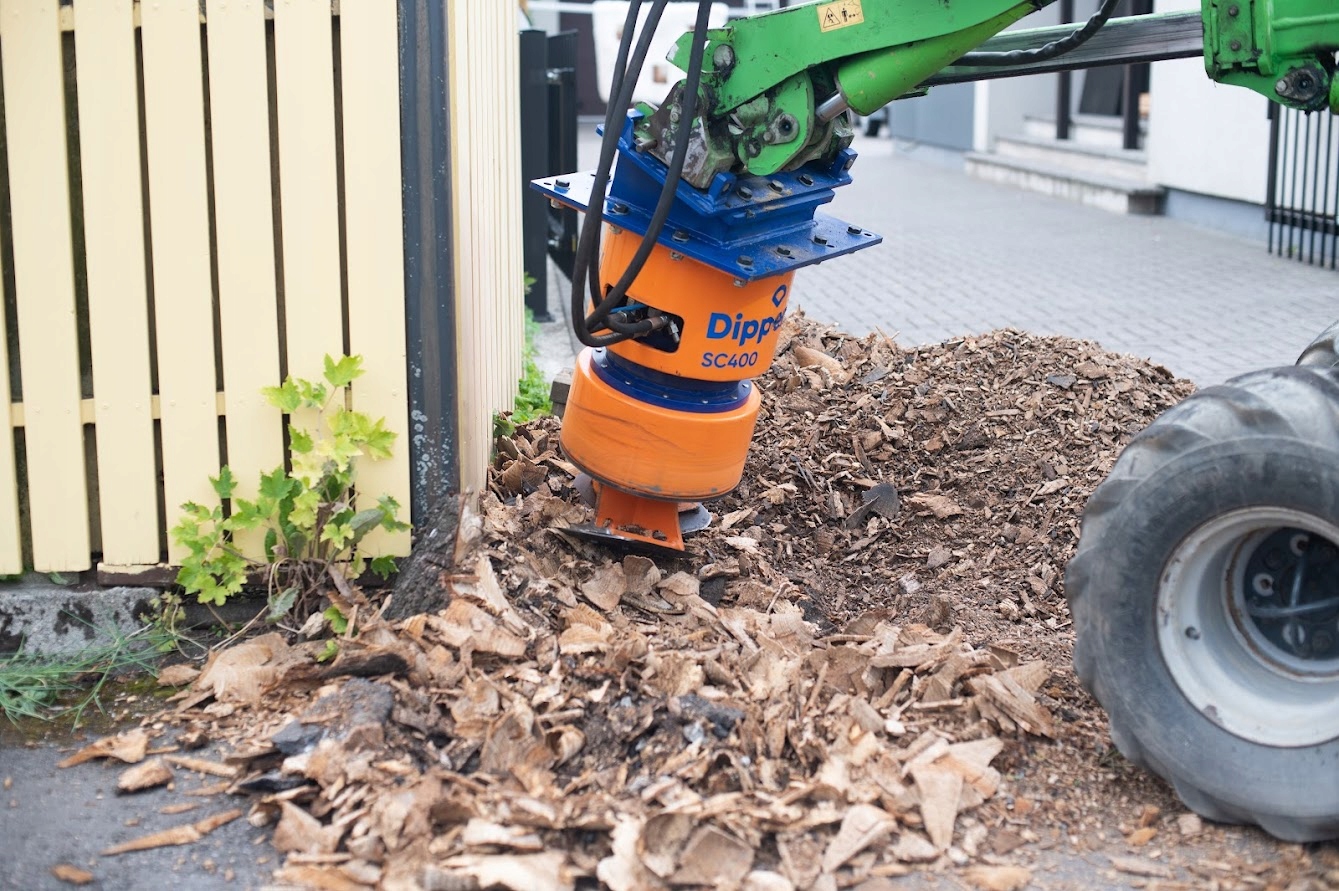 Dipperfox SC 400 удаляет 1 туловище примерно за 50* секунд и до 40* стволов за час! Пни с диаметром до 40 см