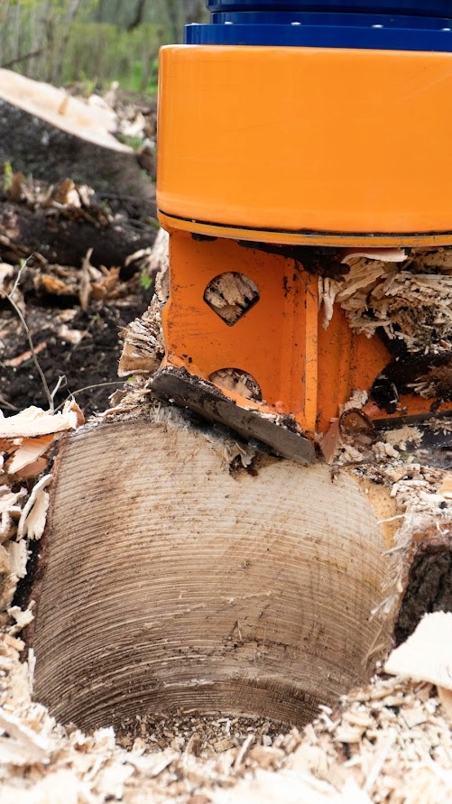 - Роторные лезвия стираются и прилипают остатки ствола в землю, не оставляя пробелов или пустых пространств (пень земли будет использоваться в качестве удобрения для будущих посадков) Деревья
