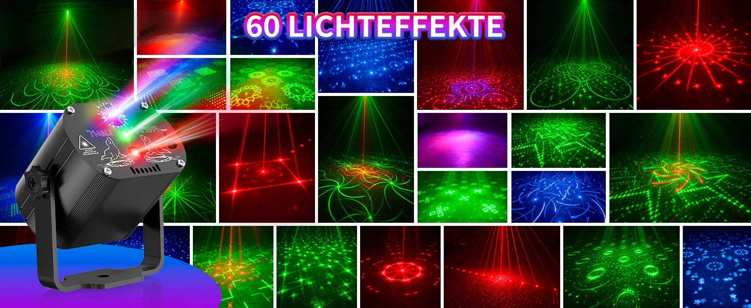 DJ Disco Ball имеет основные свет в красном и зеленых и светодиодах в красных, зеленых и синих светодиодах. Он предлагает 60 различных конструкций диско и 6 режимов работы (автоматический режим 1/2/3, звуковой режим 1/2/3). Различные комбинации могут обеспечить захватывающее легкое шоу.