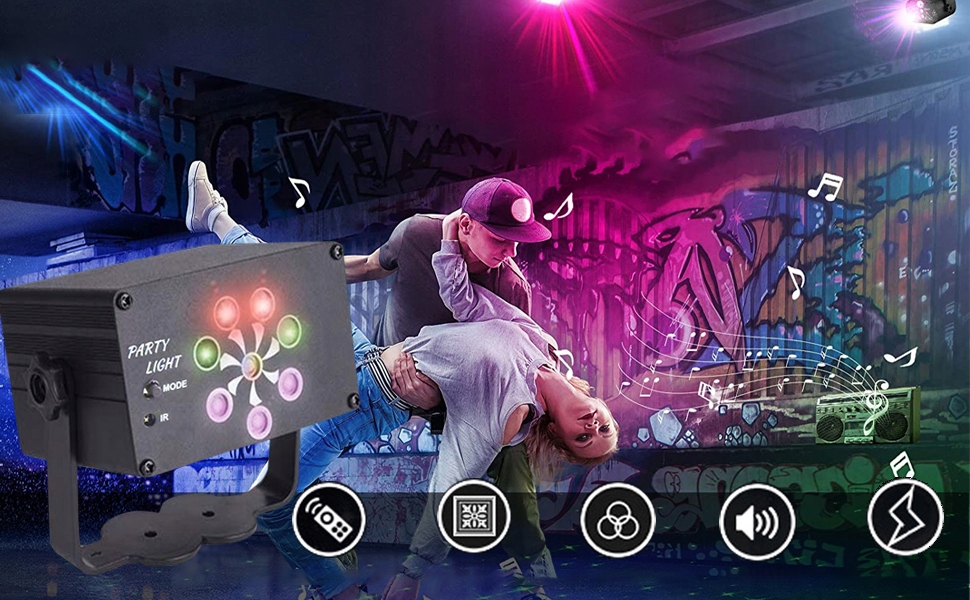 🌈 【Звуковая активация】: Огни вечеринки танцуют в такт музыке, и даже дети будут смеяться, аплодировать или петь, чтобы вы нет необходимости размещать диско-светильники рядом с динамиками.