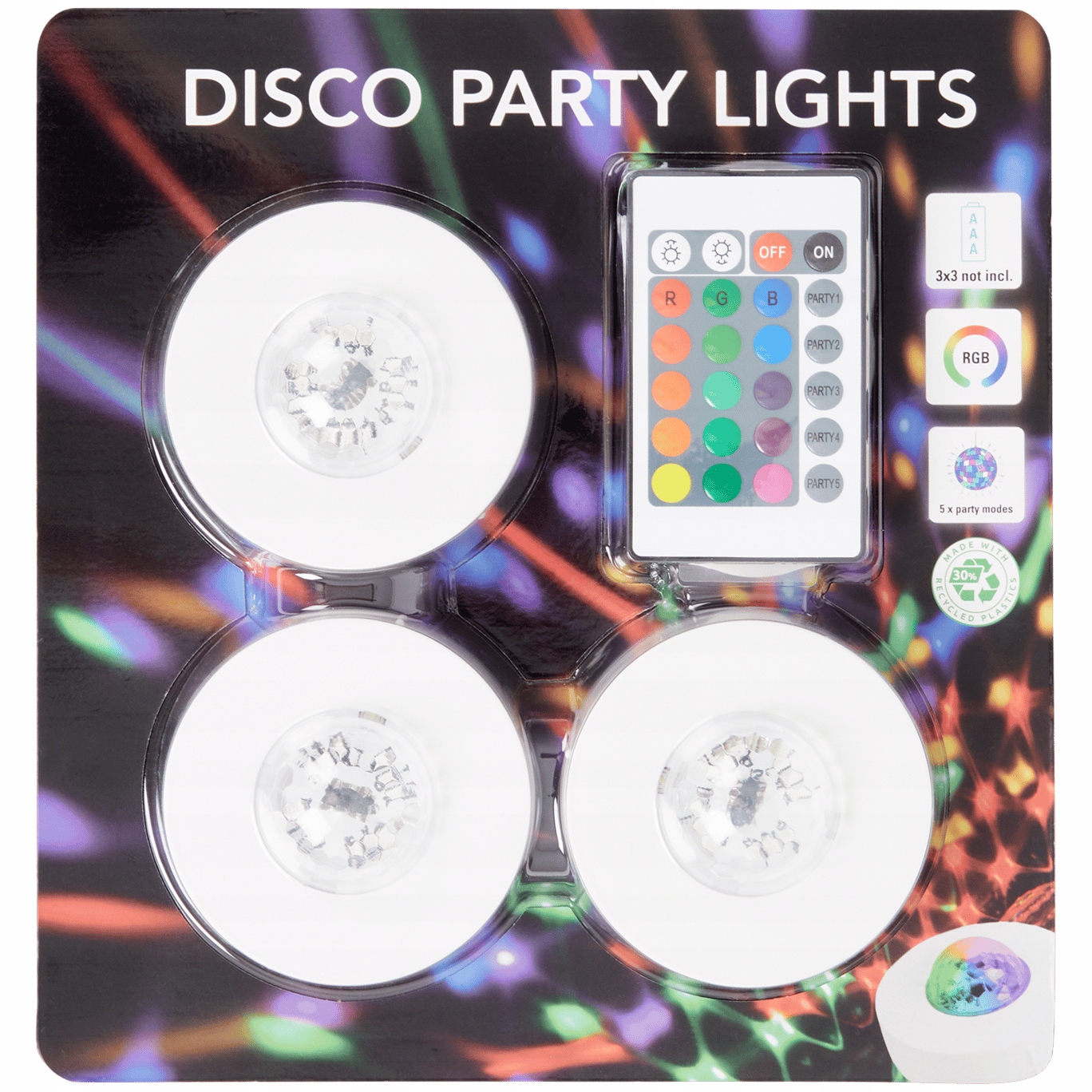 Создайте неповторимую атмосферу на вечеринках, днях рождения или встречах с друзьями благодаря набору Disco Party Lights. В комплект входят 3 светодиодные лампы RGB и пульт дистанционного управления, который позволяет легко управлять освещением и выбирать из множества режимов работы.