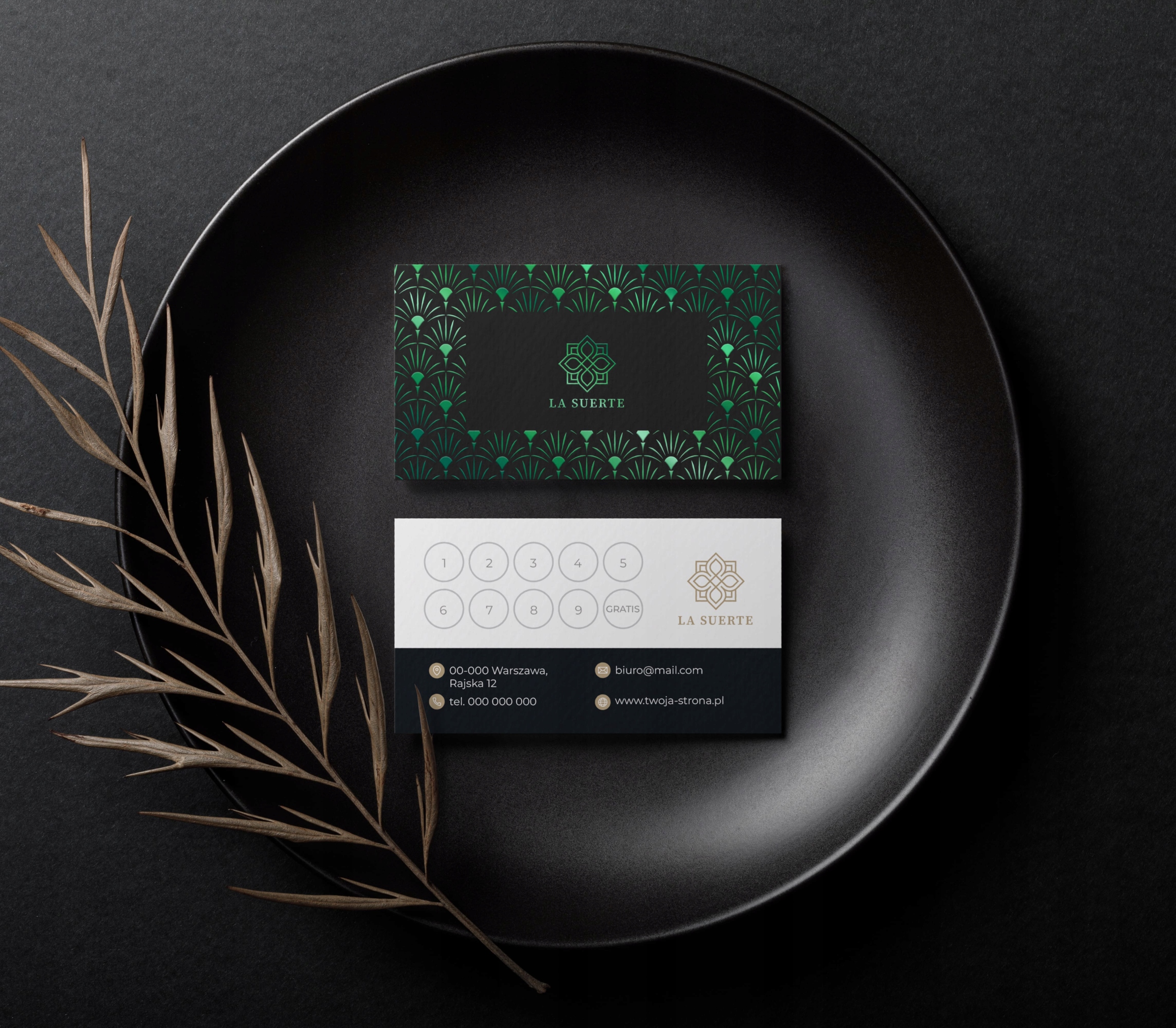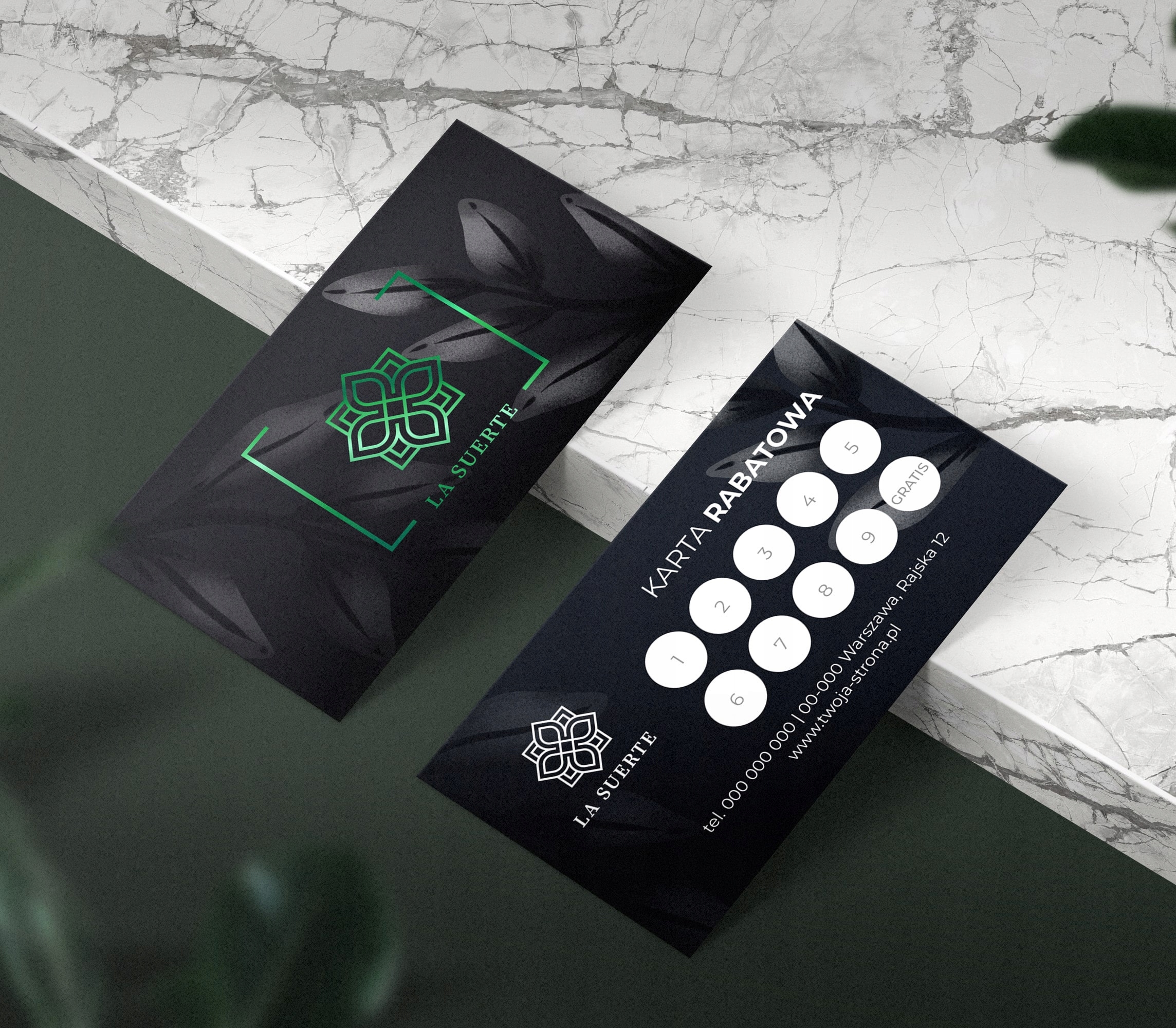 Дисконтные карты лояльности, позолота, зеленая фольга, 100 шт + дизайн