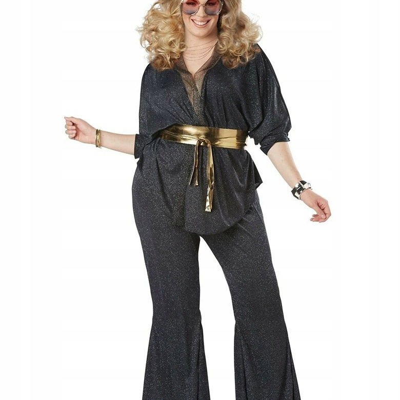 Будьте шикарны и привлеките внимание всех своих соперников по дискотеке. В этом модном костюме в стиле 70-х вы станете звездой любой танцпола. Блуза-клеш и плиссированная блузка из потайного материала, украшенная серебряными блестками. Золотой пояс позволяет сделать разметку, благодаря чему вы сможете получить окончательный эффект культового диско-наряда.