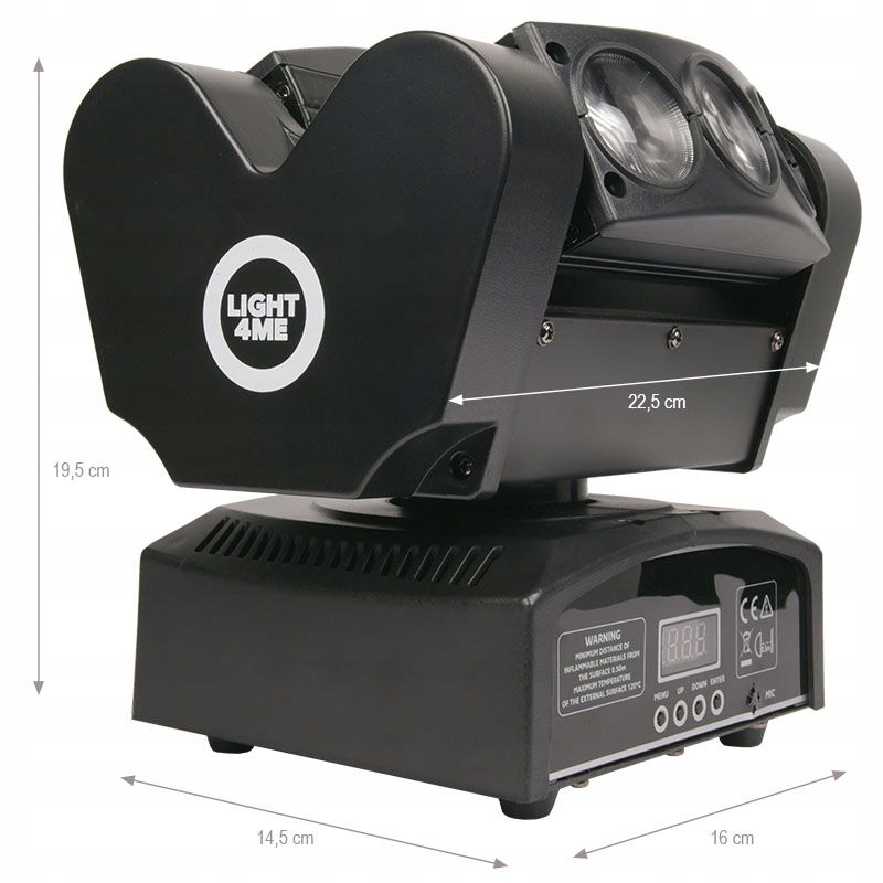 Light4me Head Head Head 6x10 имеет два параллельных светодиодных луча, которые могут независимо перемещаться по своей собственной оси и устанавливаются дополнительно на вращающейся платформе, которая позволяет осветить более широкую область. Każda belka wyposażona jest w 3 diody o mocy 10 watów każda, эмитудж с wiązki typu beam w kolorach rgbw. Примечательно, что заслуживает возможности использования до 15 встроенных программ, которые будут отлично работать на каждой стороне, особенно когда у нас не хватает времени для ручных настройки.