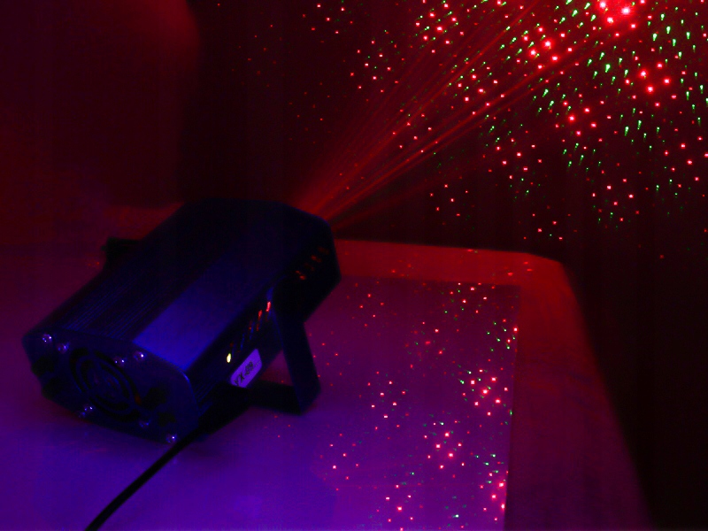 - к ритму музыки - благодаря встроенному микрофону, лазер мигает к ритму музыки