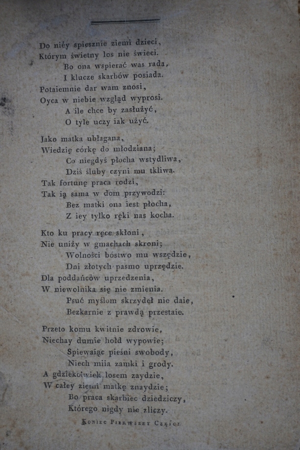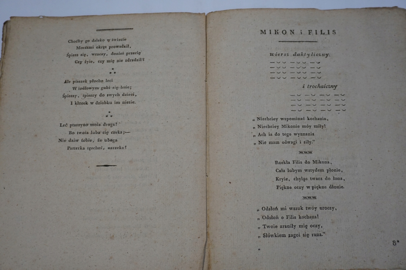 Стихи с предисловием о стихосложении 1817-1818 гг., изд. в книге: Диссертация Й. Эльснера о метричности и ритмичности польского языка, Варшава 1818 г.