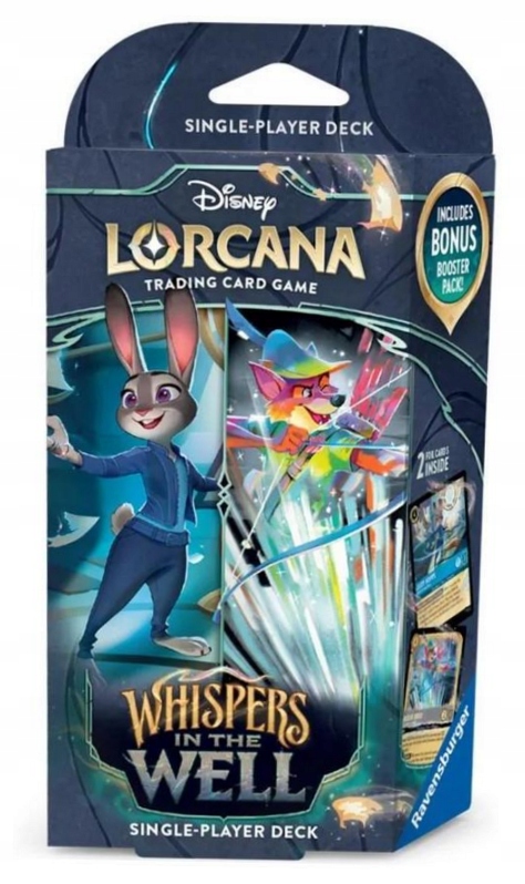 ИГРАЙТЕ — ОТКРЫВАЙТЕ — СОБИРАЙТЕ Disney Lorcana TCG — коллекционная карточная игра (TCG Trading Card Game), выпущенная в августе 2023 года. Действие игры происходит в чудесной стране Лоркана. Игроки берут на себя роль Просветителей и владеют волшебными чернилами, чтобы вызывать знаменитых и любимых персонажей Диснея. Благодаря своим уникальным навыкам эти персонажи вместе с игроком создают собственную сюжетную линию и тем самым приводят его к победе. Кроме того, карты Disney Lorcana привлекают внимание графикой с хорошо известными и любимыми персонажами Disney, благодаря чему они приобретают очень высокую коллекционную ценность. В мае 2024 года издатель игры — Ravensburger запустил новый формат турниров более высокого рейтинга — Disney Lorcana TCG Challenge. Первые два мероприятия, прошедшие в одни выходные в Атланте (США) и Лилле (Франция), собрали в общей сложности более 4000 человек, а желающих оказалось гораздо больше. Подсчитано, что на тот момент количество игроков и коллекционеров в мире уже превышало 200 000 человек (двести тысяч!!!), несмотря на молодой возраст игры. В настоящее время их гораздо больше. Примите вызов и присоединяйтесь к ним сегодня. Стартовая колода позволяет вам начать свое приключение в Дисней-Лоркане. В данный товар входит готовая тематическая колода из 60 карт и 1x Бустер (дополнительный набор). Бустер содержит 12 карт, которые вы можете сразу использовать для модификации своей колоды и расширения продукта: - 1 колода Disney Lorcana (60 карт) - 1 бустер (дополнительный набор) Каждый бустер (дополнительный набор) содержит 12 случайных коллекционных карт: - 6 обычных карт - 3 необычные карты - 2 редкие, сверхредкие или легендарные редкие карты - 1 фольгированная или зачарованная карта