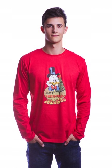 Длинный рукав в рождественских тонах с мотивом рождественской елки. На этот раз коллекция Диснея. Скрудж МакДак, известный польской публике как Скрудж МакДак, взял шефство над рождественской добычей. Его изображение символизирует сказочно богатые праздники. Внимание! Благодаря красному цвету футболка отлично подойдет как часть наряда самопровозглашенных Дедов Морозов.